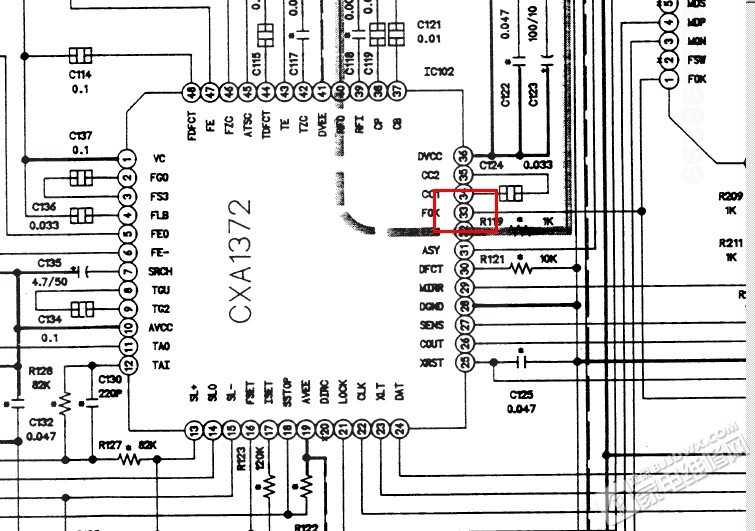 维修过程:首先检查机内各组电压没有发现异常,检查cxa1372 RF信号处理芯片33脚没有FOK引脚没有聚焦ok电压输出,cxa1372电源供电正常,外元件没有发现异常,代换cxa1372后放入光盘测试可以读出目录了,但是读盘较慢而且有噪音,检查RF波形发现波形混乱眼孔模糊,看了一下伺服板的聚集增益电位器已经被人调整过了,重新调整聚集增益把眼孔调整到最佳状态后,测试多张光盘读盘秒杀,播放流畅,连续烤机24小时以上没有发现异常,维修完成交付客户。提醒广大发烧友如果您自己更换激光头时一定要做好防静电处理,以免故障扩大。